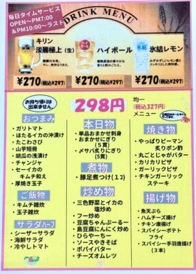開店後と閉店前の時間帯限定で、料理40品が298円、ビールが190円!