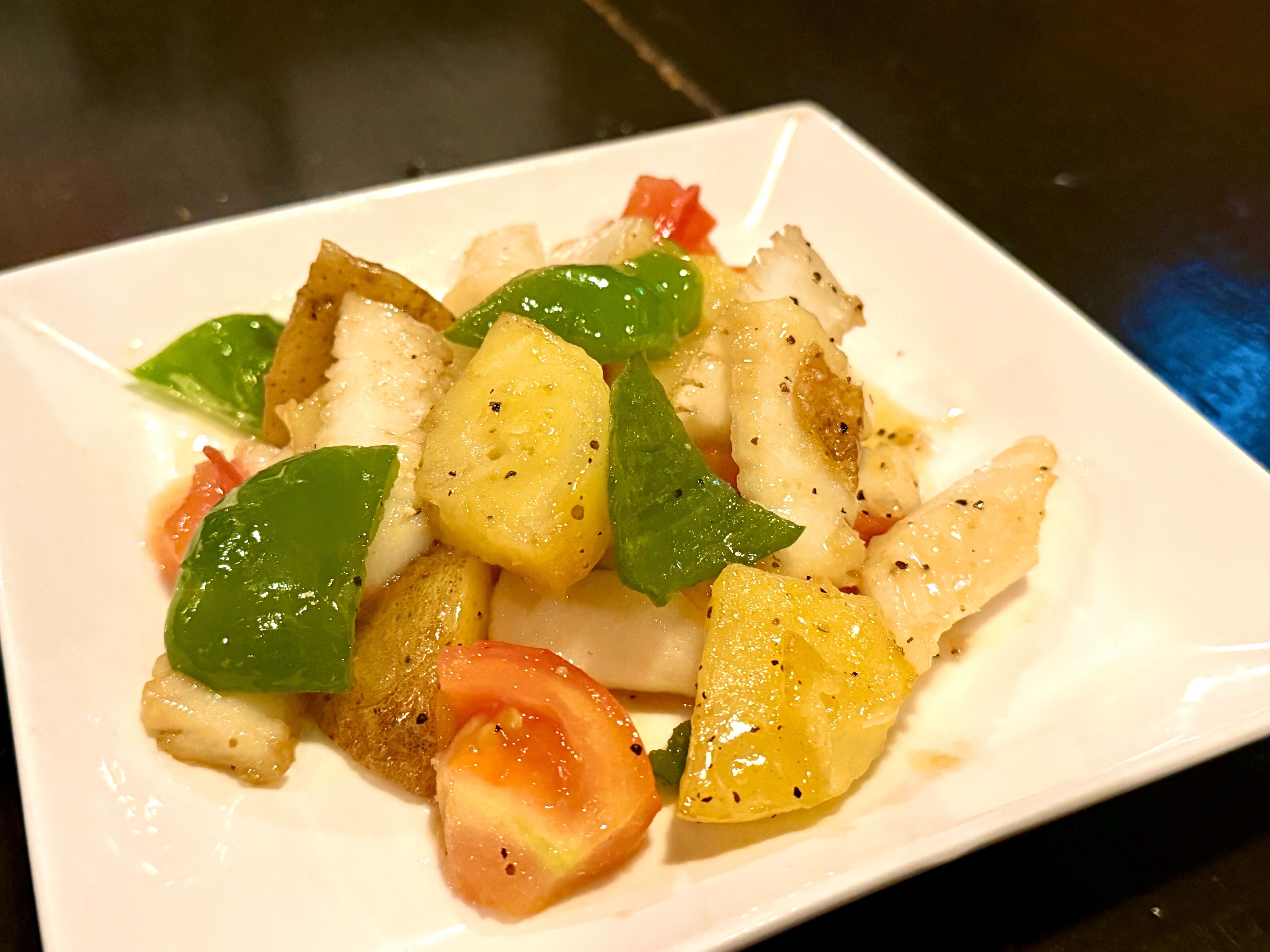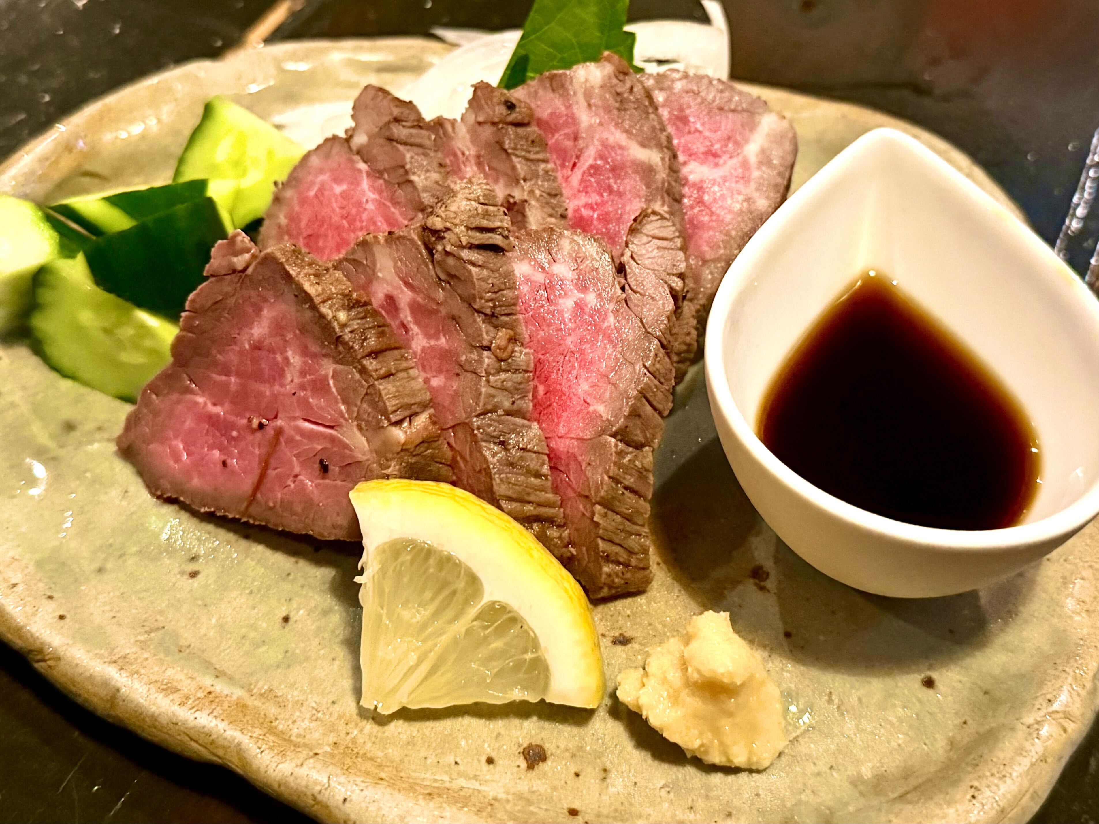 とても柔らかい食感と中はミディアムレアに仕上げ、にんにく丸ごと一つとポテトフライを添えております!